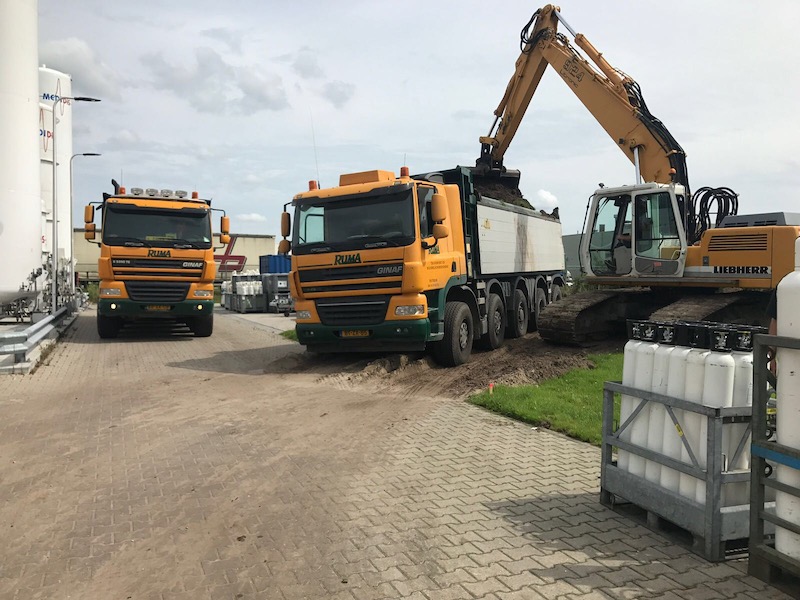 Zandtransport is een belangrijk onderdeel van de werkzaamheden die RUMA uitvoert. Voor het vervoer van grote hoeveelheden zand worden er dagelijks kippers ingezet die tot 25m³ zand per keer kunnen meenemen.